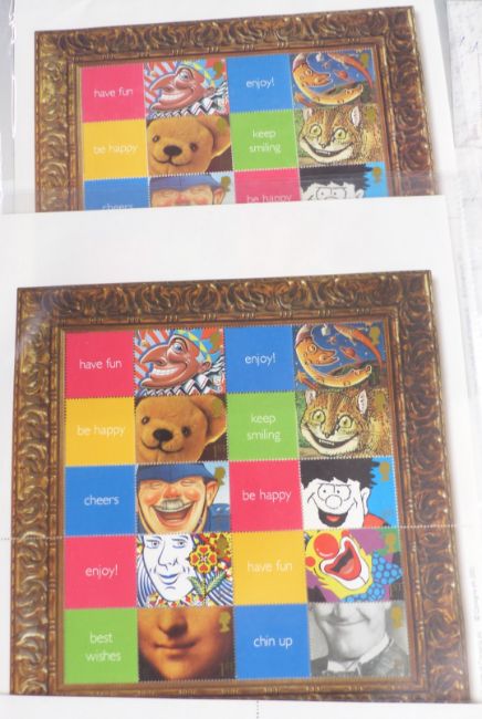 A good lot of early smiler sheets comprising LS2 x 2, and 52a (Imprint Consignia 2001) x 1, LS53 x 2, LS3a (imprint Consignia 2001) x 1, LS5 x 2 , LS56 x 1, LS7 x 1, LS8 x 1. High catalogue value over £2,500