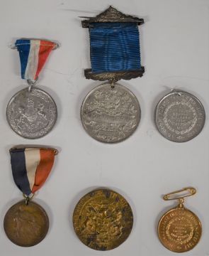 Six commemorative medals including 1937 Coronation of George VI and 1935 Silver Jubilee both inscribed 'A gift to the schoolchildren from Robert Perkins MP', Edward VII 1902 Coronation etc - Robert Perkins was MP for Stroud.