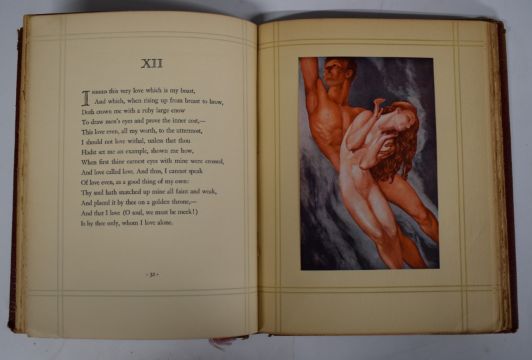Izaak Walton The Compleat Angler of The Contemplative Man’s Recreation with illustrations by James Thorpe T.N. Foulis 1925 with coloured plates, bound by Riviere in full mottled calf with gilt decorated spine and ruled borders, Mr. Pickwick’s Christmas by Charles Dickens with pictures by George Alfred Williams 1906 in original cloth, Browning’s Sonnets from The Portuguese illustrated by Willy Pogany in gilt leather, Christmas in The Olden Time of The Wassail Bowl by John Mills illustrated by Duncan with colour printed title (1846) gilt cloth (4)