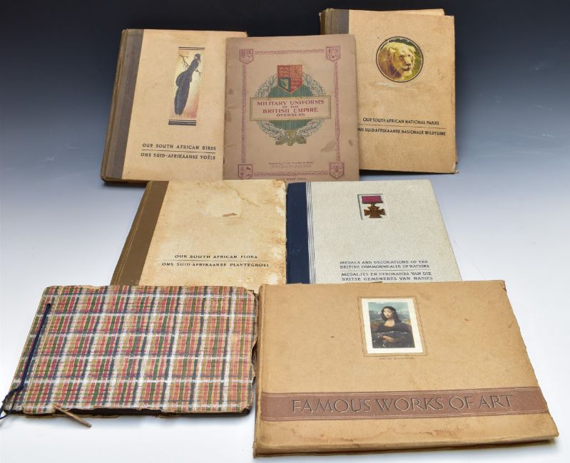 United Tobacco Company cigarette card books, largely of South African topics, military uniforms, birds, art, medals, floral, parks etc