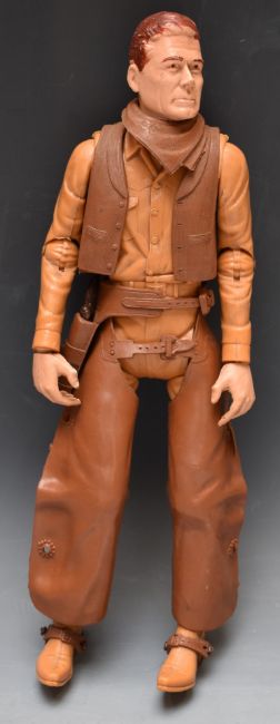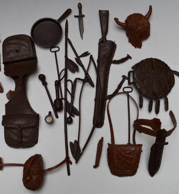 Vintage Marx 'Johnny West' cowboy action figure and 'Chief Cherokee' together with accessories and horse, both partially boxed.