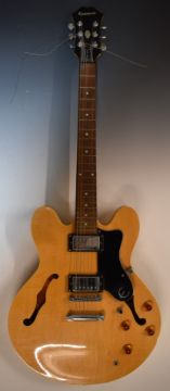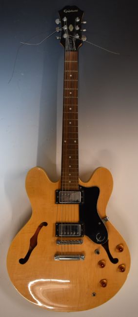 Epiphone Dot ES335 semi acoustic guitar with blonde jazz style cello holed body, reg no. 020710148