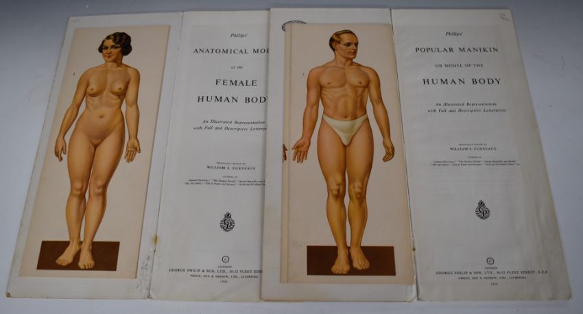 Philip's Anatomical Model of the Human Body, originally edited by William S Furneaux, together with the same, but Female Body, both 46.5 x 19.5cm