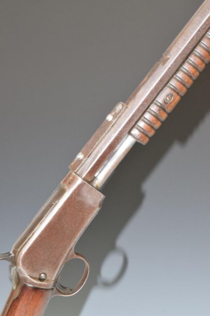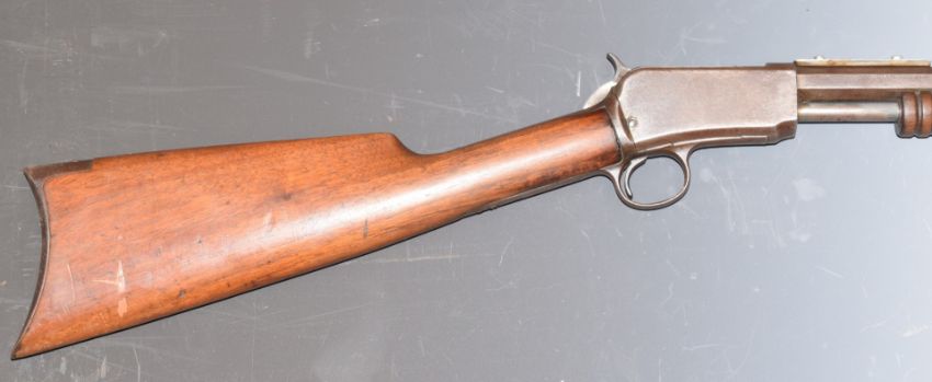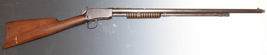 Winchester Model 1890 .22 pump-action rifle with adjustable sights and 24 inch octagonal barrel stamped 'Manufactured by The Winchester Repeating Arms Co New Haven Conn USA Pat June 26 88, Dec 6 92', overall length 103cm, serial number 29661. PLEASE NOTE THAT A VALID RELEVANT FIREARMS/SHOTGUN CERTIFICATE IS REQUIRED TO HANDLE/PURCHASE THIS ITEM.