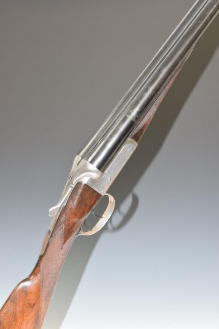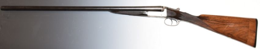 William Jackman Jeffery & Co 12 bore side by side shotgun with engraved named locks, underside, trigger guard, fences, top plate and thumb lever, chequered grip and forend, vacant cartouche to the underside of the stock, double trigger and named 30 inch barrels choked ¼ and ¾, overall length 120.5cm, length of pull 39cm, serial number 8346. PLEASE NOTE THAT A VALID RELEVANT FIREARMS/SHOTGUN CERTIFICATE IS REQUIRED TO HANDLE/PURCHASE THIS ITEM.