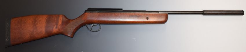 Parker Hale Striker .22 air rifle with chequered semi-pistol grip, scope rail, adjustable trigger and sound moderator, serial number 0843.