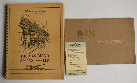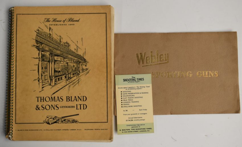 Thomas Bland & Sons Gunmakers Ltd The House of Bland 1960 catalogue No. 59 illustrated throughout and advertising shotguns, rifles, cartridges and accessories together with a similar Webley & Scott Ltd Webley Sporting Guns 1956 example and The Shooting Times & Country Magazine advertising and shooting season dates card.