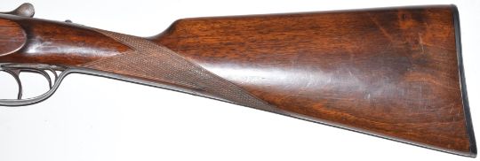 'The Basque' 12 bore side by side shotgun with chequered grip and forend, double trigger and named 28 inch barrels choked ¼ and ¾, overall length 114.5cm, length of pull 37.5cm, serial number 183632. PLEASE NOTE THAT A VALID RELEVANT FIREARMS/SHOTGUN CERTIFICATE IS REQUIRED TO HANDLE/PURCHASE THIS ITEM.