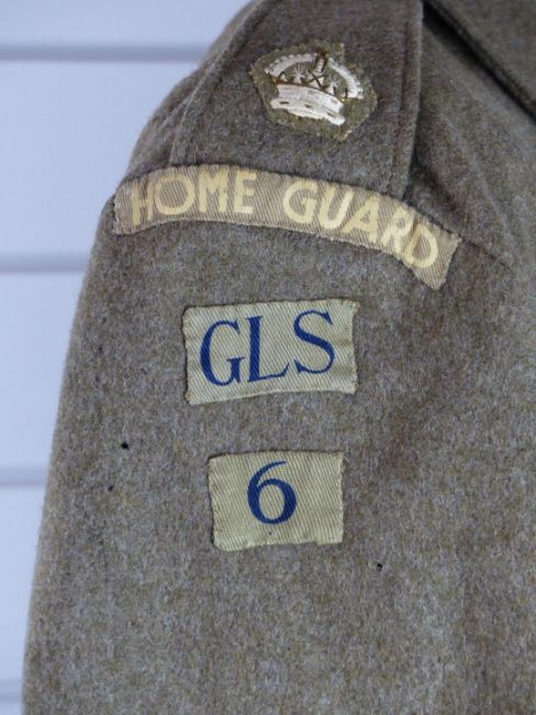 WW2 Home Guard battle dress tunic dated 1940 by L & I Reece, with Major rank shoulder badges, GLS 6 (6th Gloucestershire, South Gloucestershire Battalion), overseas service chevrons and medal ribbon. Consigned for sale by the Trustees of the Royal Gloucestershire Hussars Trust