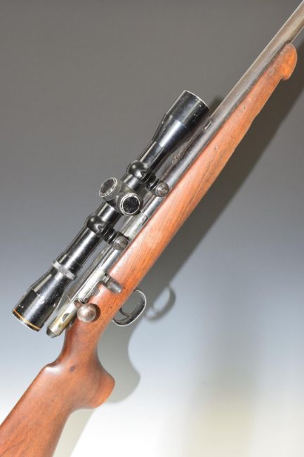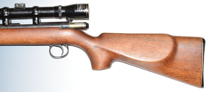 BSA .22 bolt-action rifle with semi-pistol grip, Nikko Stirling Special 4x32 scope and 22.5 inch barrel, overall length 101.5cm, serial number 24375B. PLEASE NOTE THAT A VALID RELEVANT FIREARMS/SHOTGUN CERTIFICATE IS REQUIRED TO HANDLE/PURCHASE THIS ITEM.