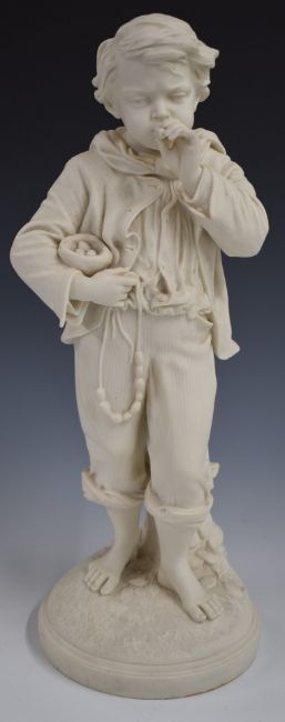 Copeland Parianware figure of a boy with bird's nest, H42cm