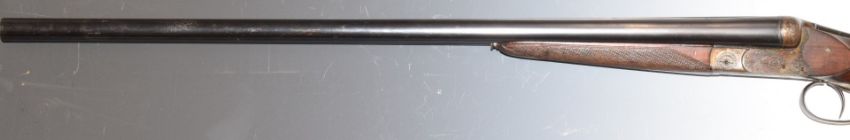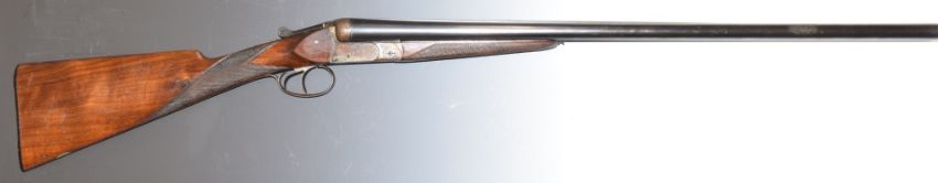 Fabrique Nationale 12 bore side by side shotgun with engraved locks, underside, trigger guard, thumb lever and fences, chequered grip and forend, inset cartouche to the underside of the stock, double trigger and 27.5 inch barrels choked ¾ and ½, engraved to the underside 'Fabrique Nationale D'Armes De Guerre Herstal Belgique', overall length 11.5cm, length of pull 35.5cm, serial number 14182. PLEASE NOTE THAT A VALID RELEVANT FIREARMS/SHOTGUN CERTIFICATE IS REQUIRED TO HANDLE/PURCHASE THIS ITEM.