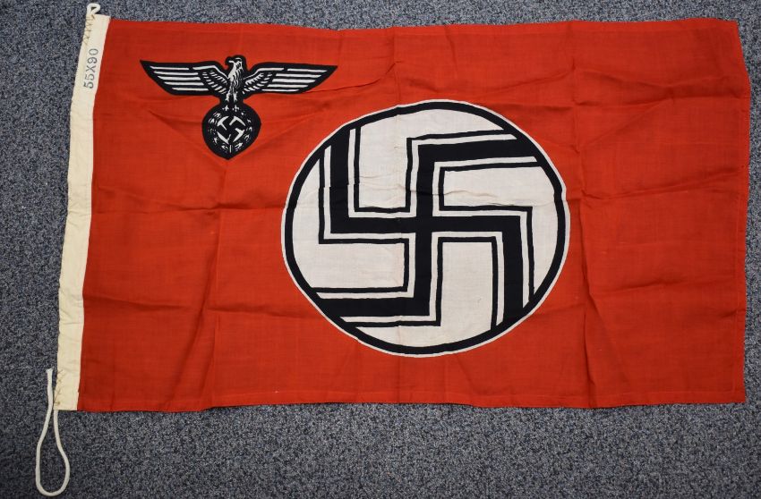 Collection of militaria including link ammunition, WW2 style water bottle, canvas pistol holster, carbine holder, Medals & Decorations of the Third Reich book, two CDs of German SS songs, sword knot, Nazi and Confederate flag etc