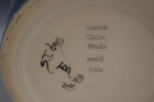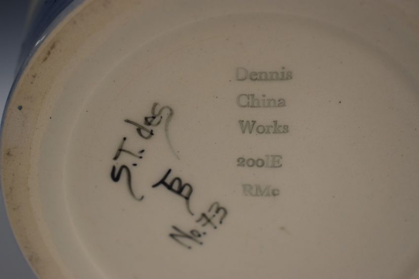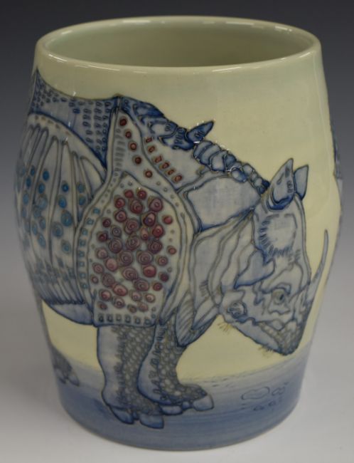 Dennis Chinaworks limited edition no73 large barrel vase decorated with rhinoceros, Sally Tuffin monogram and 2001 date to base, H19cm