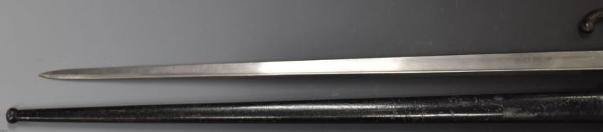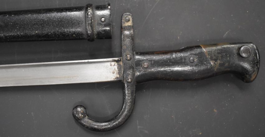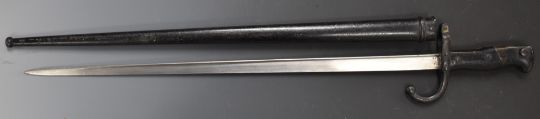 French 1874 pattern Gras bayonet, 1876 manufacture date to 52cm blade, with scabbard. PLEASE NOTE ALL BLADED ITEMS ARE SUBJECT TO OVER 18 CHECK ON COLLECTION OR DELIVERY