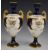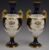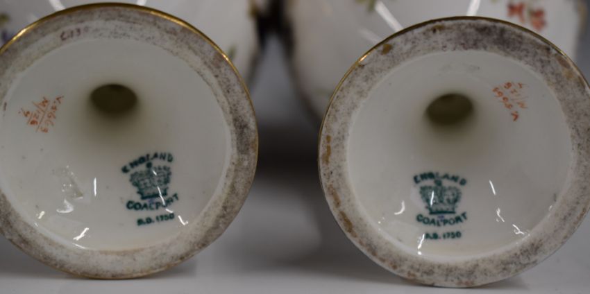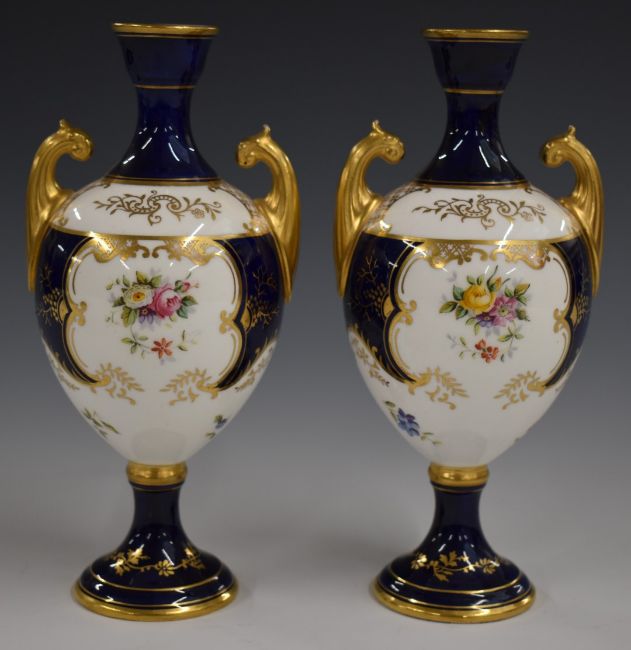 Coalport pair of twin handled pedestal vases decorated with flowers, H18cm