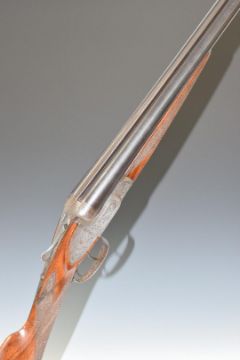 Belgian 16 bore side by side sideplate ejector shotgun retailed by L'Abeille Manufacture D'Armes with engraving to the locks, underside thumb lever and fences, chequered grip and forend, double trigger and 27.5 inch barrels engraved 'L'Abeille Manufacture D'Armes 81 Rue Turbigo Paris', overall length 109cm, length of pull 34cm, serial number 14629. PLEASE NOTE THAT A VALID RELEVANT FIREARMS/SHOTGUN CERTIFICATE IS REQUIRED TO HANDLE/PURCHASE THIS ITEM.