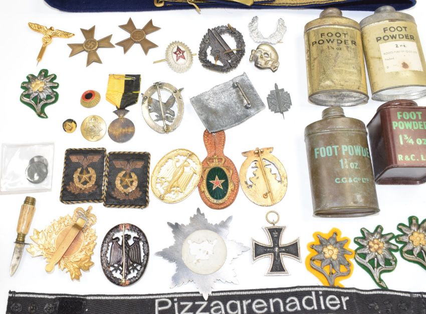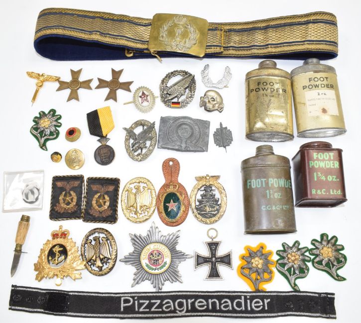 German Nazi and other militaria including badges, belt, photos etc