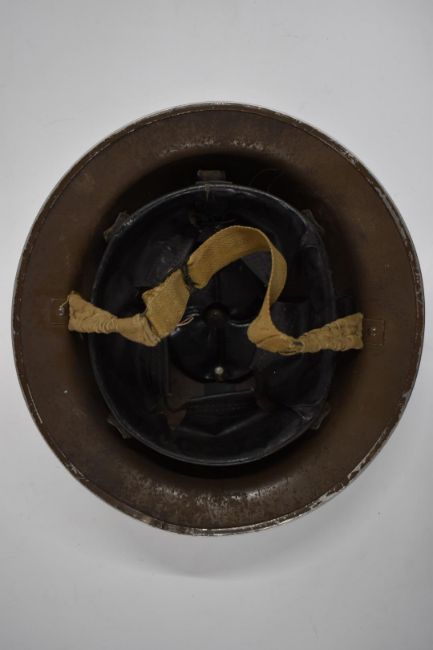 WW2 British 'Brodie' steel helmet stamped RFM 1939 to rim with R to front complete with liner and chin strap