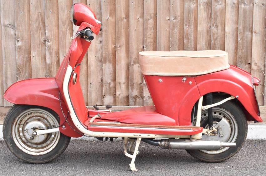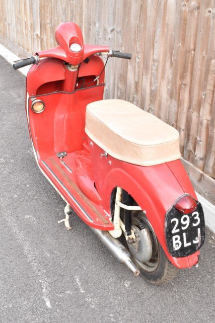 1961 James SC1 150cc scooter motorbike, registration number 293 BLJ with original buff logbook and with 1977 tax disc still on the machine, vendor advises it has had a recent engine rebuild, together with original handbook and May 1960 magazine featuring the model, odometer records 5515 miles