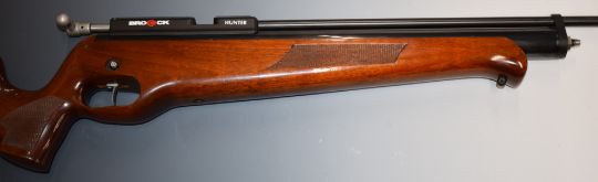 Brocock Hunter .22 PCP air rifle with chequered semi-pistol grip, raised cheek piece, adjustable trigger, sound moderator and sling mounts, serial number 00321.