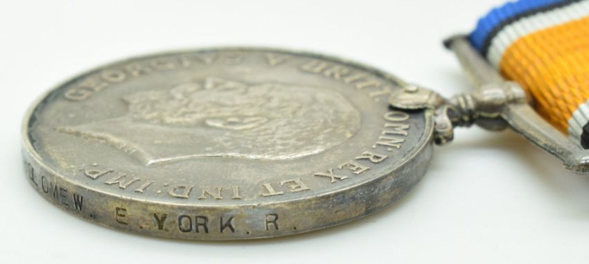 British Army WW1 War Medal named to 202055 Pte C J Bartholomew, East Yorkshire Regiment, with box