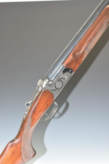 AYA Special Edition 12 bore over and under ejector shotgun with engraved locks, top plate, trigger guard and underside, single trigger, chequered semi-pistol grip and forend and 28 inch multi-choke barrels, overall length 114cm, length of pull 36cm, serial number 19973. PLEASE NOTE THAT A VALID RELEVANT FIREARMS/SHOTGUN CERTIFICATE IS REQUIRED TO HANDLE/PURCHASE THIS ITEM.