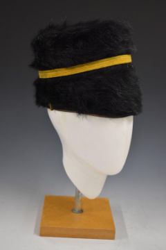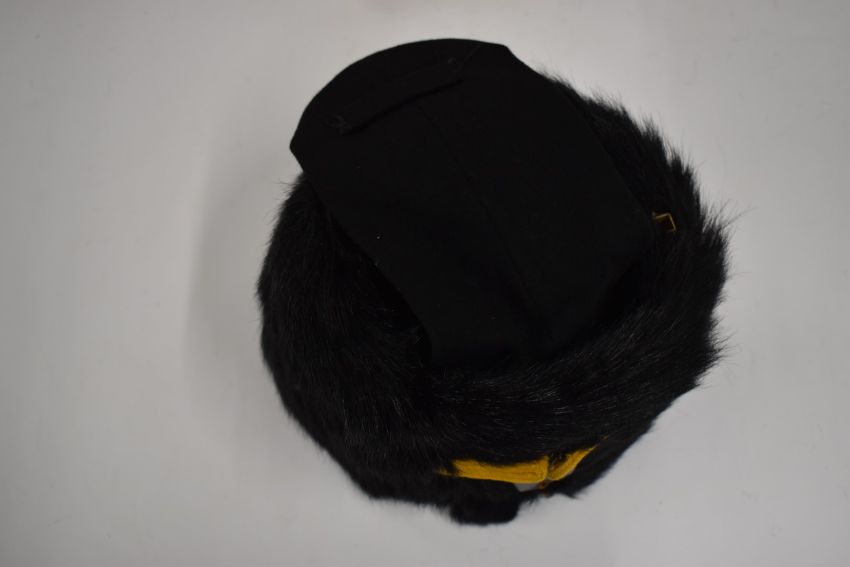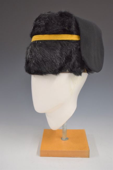 British Army Royal Gloucestershire Hussars fur busby retaining yellow cord line and black bag, SSM Clotworthy to interior. Consigned for sale by the Trustees of the Royal Gloucestershire Hussars Trust