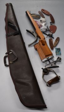 Fully adjustable wooden target rifle stock with three position accessories, carry case etc.