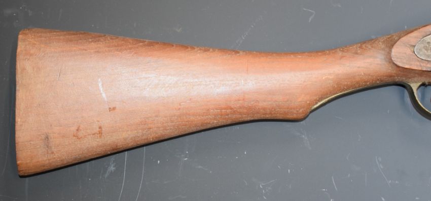 Enfield pattern three band percussion hammer action rifle with lock stamped with eastern script, brass trigger guard and 38 inch barrel, overall length 136cm.