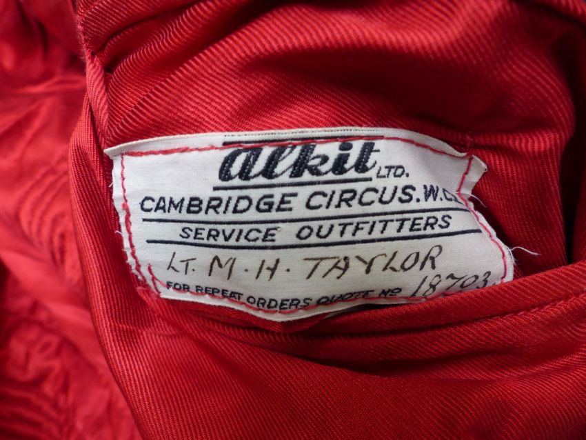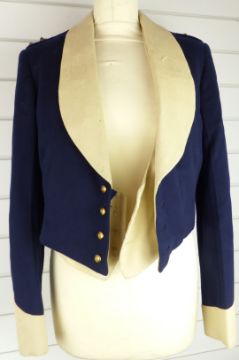 British Army Royal Gloucestershire Hussars officer's mess jacket in blue and buff cloth with crimson silk lining, named Lt M H Taylor to the Alkit Ltd, London tailor's label, together with a waistcoat. Consigned for sale by the Trustees of the Royal Gloucestershire Hussars Trust