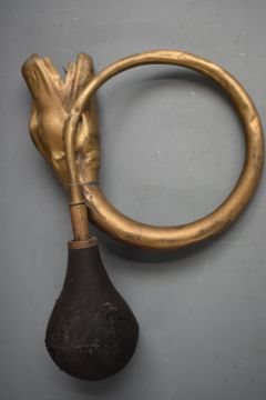 Vintage brass car horn with figural boa constrictor or similar head, length 36cm