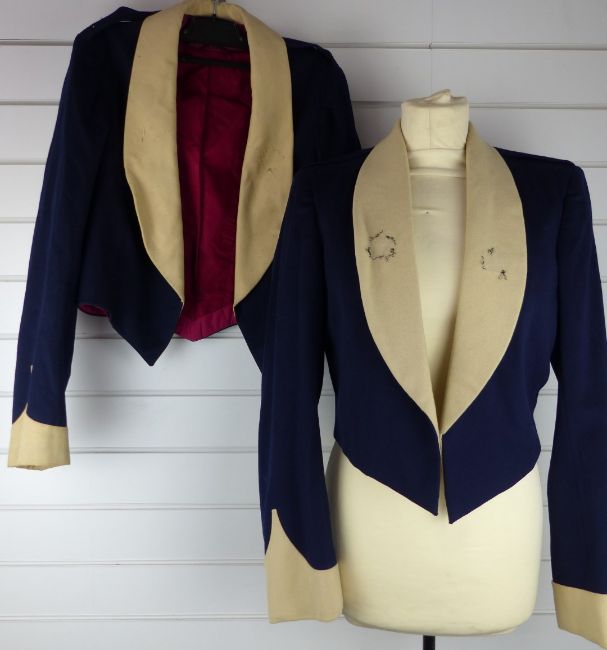 British Army Royal Gloucestershire Hussars two officer's mess jackets in blue and buff cloth with red silk lining. Consigned for sale by the Trustees of the Royal Gloucestershire Hussars Trust