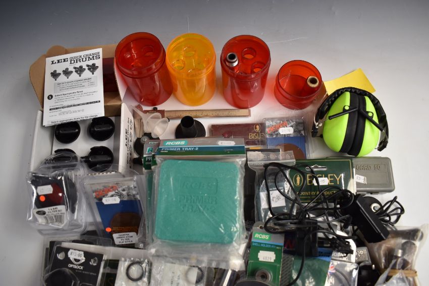 A collection of gun and shooting parts and accessories including scope mounts, Deben Tracer accessories, lenses and lens cap etc.