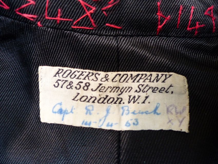 Two British Army 12th Lancers No1 dress tunics, both named Captain R J Beech MC, both with buttons and one with medal ribbon. Consigned for sale by the Trustees of the Royal Gloucestershire Hussars Trust