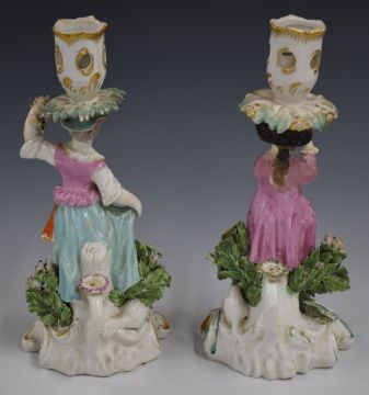 Derby patch period figural candlesticks, H23cm