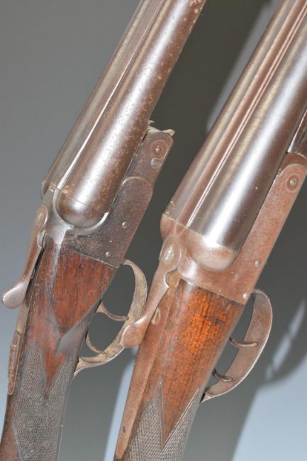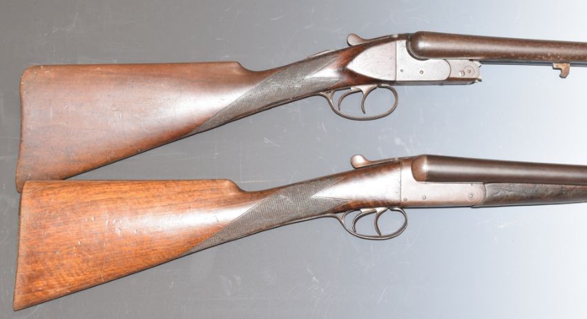 Two 12 bore side by side shotguns, one BSA serial number 34827 the other unnamed serial number 1909. PLEASE NOTE THAT A VALID RELEVANT FIREARMS/SHOTGUN CERTIFICATE IS REQUIRED TO HANDLE/PURCHASE THIS ITEM.