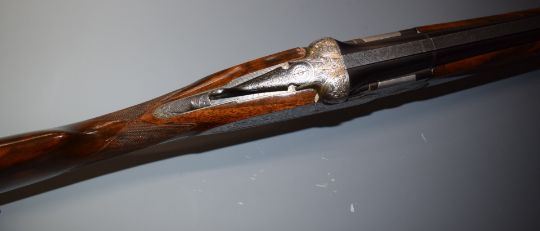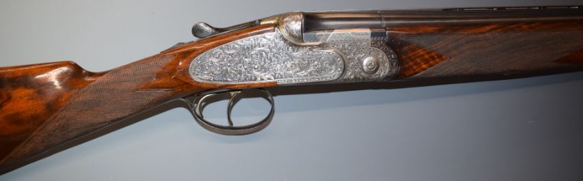 Beretta SO3 EL 12 bore over and under sidelock ejector shotgun with fine scrolling engraving to the locks, underside, trigger guard, fences, top plate and thumb lever, chequered grip and forend, inset cartouche to the underside of the stock, vented top rib, double trigger and 28.5 inch barrels, overall length 116cm, length of pull 37.5cm, serial number A04984B, in fitted leather bound Beretta case. PLEASE NOTE THAT A VALID RELEVANT FIREARMS/SHOTGUN CERTIFICATE IS REQUIRED TO HANDLE/PURCHASE THIS ITEM.
