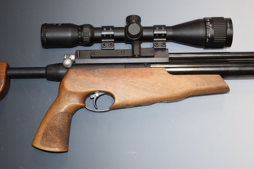 Air Arms S410 TDR .22 PCP take down air rifle with chequered pistol grip, two ten-shot magazines, adjustable trigger, sound moderator and Nikko Stirling Mountmaster 3-9x40 scope, serial number 048707, in original fitted case with filling accessories tools and Users Handbook.