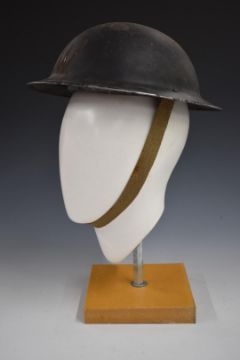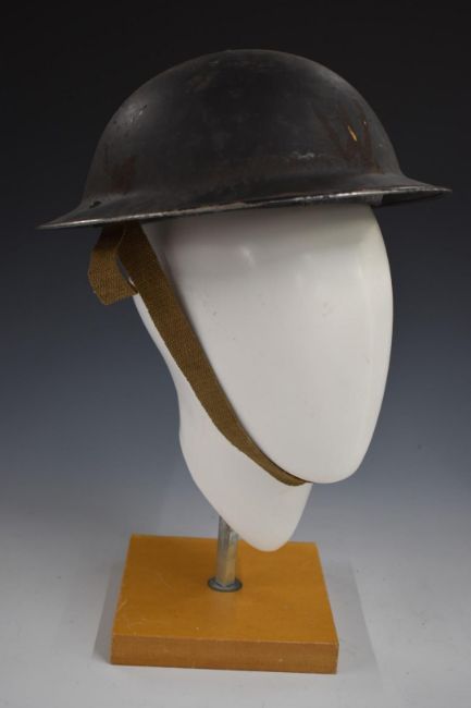 WW2 British 'Brodie' steel helmet stamped HMB 1941 with liner and chin strap together with one other unmarked example