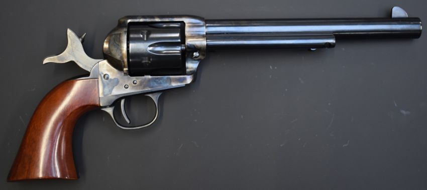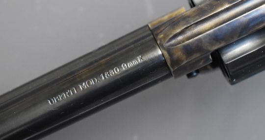 Uberti Model 1830 Colt Peacemaker style 9mm blank firing six-shot single action revolver with shaped wooden grips and 7.5 inch barrel, overall length 35cm, serial number UE6048.