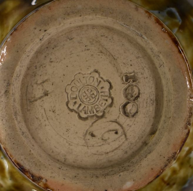 Four Royal Doulton Foliage Ware pedestal vases decorated in the Autumn Leaves pattern, tallest 19cm
