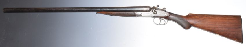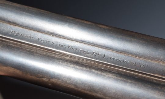 Percy Newton of London 12 bore side by side hammer action shotgun with engraved locks, trigger guard, underside, hammers, thumb lever and fences, chequered semi-pistol grip and horn tipped forend, vacant cartouche to the underside of the stock, double trigger and 27.5 inch barrels choked ¼ and ½, overall length 112cm, length of pull 36.5cm, serial number 1848. PLEASE NOTE THAT A VALID RELEVANT FIREARMS/SHOTGUN CERTIFICATE IS REQUIRED TO HANDLE/PURCHASE THIS ITEM.