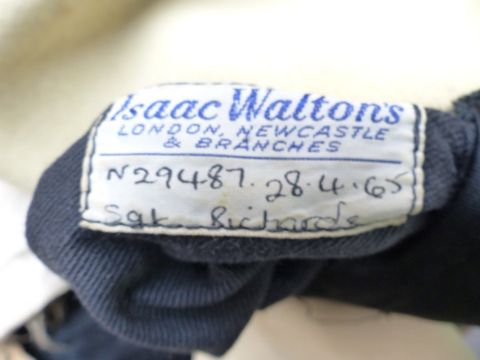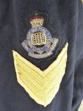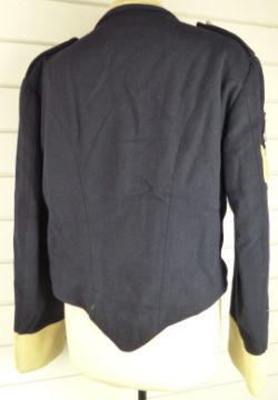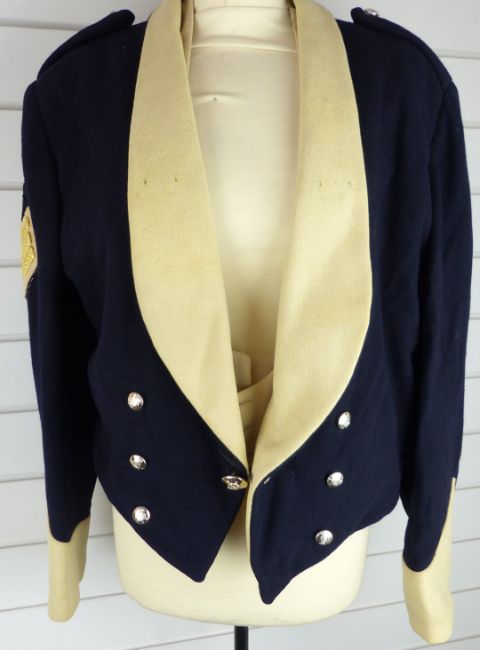 British Army Sergeant's mess jacket in blue and buff cloth with black silk lining and waistcoat with Sergeant's chevrons and mess badge to right sleeve, named Sgt Richards to Isaac Walton, London tailor's label, together with a waistcoat. Consigned for sale by the Trustees of the Royal Gloucestershire Hussars Trust