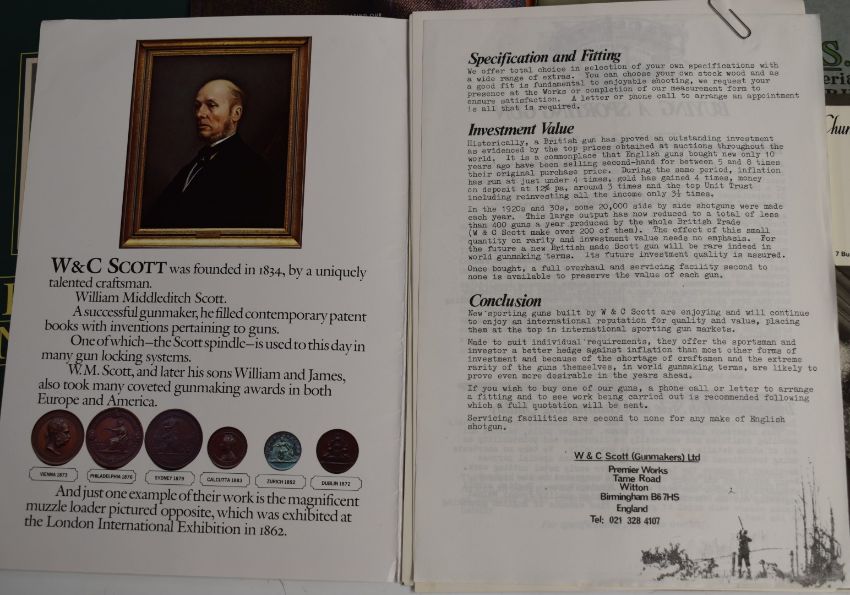 Seven gun catalogues Churchill, Atkin, Grant & Lang, Cogswell & Harrison London, W Darlow Bedford Wholesale Gunmaker, G&S Holloway, Imperial Works, Vesey St Birmingham Gun-Craft, Westley Richards British and Best, William & Son London and W&C Scott The Biography of a Shotgun, all illustrated throughout.