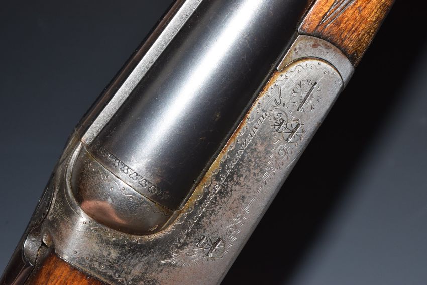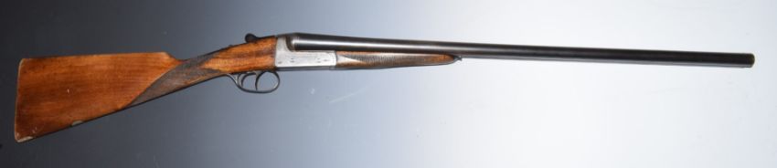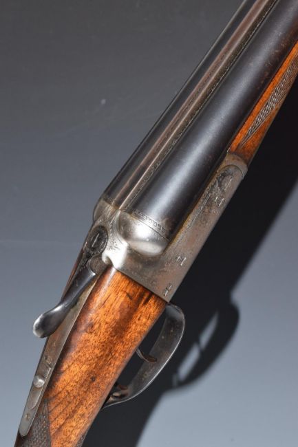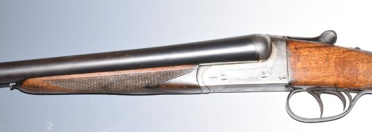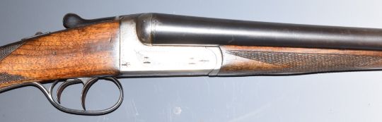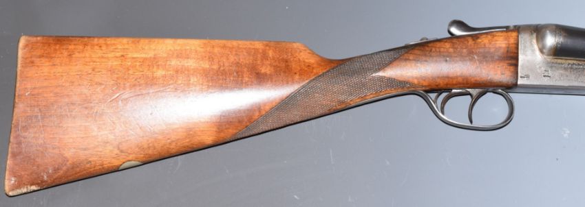 AYA No. 4 12 bore side by side ejector shotgun with named and engraved locks, engraved underside, trigger guard, thumb lever and fences, chequered grip and forend, vacant cartouche to the underside of the stock, double trigger and named 28 inch barrels choked ½ and full, overall length 114cm, length of pull 37cm, serial number 530818. PLEASE NOTE THAT A VALID RELEVANT FIREARMS/SHOTGUN CERTIFICATE IS REQUIRED TO HANDLE/PURCHASE THIS ITEM.
