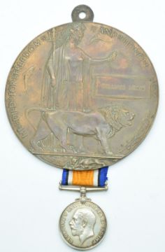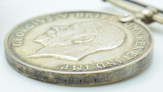 British Army WW1 Memorial Plaque named to William Long and his War Medal named to SS-171 Pte W Long, Army Service Corps