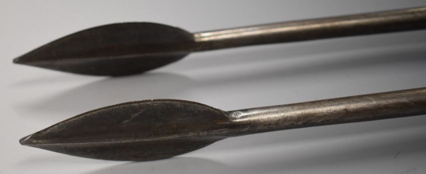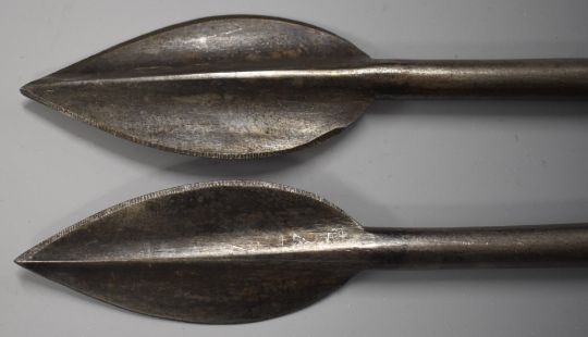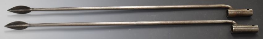 Two replica socket spear bayonets for the 1785 pattern Crespi system Egg breech loader carbine, overall length 76cm. PLEASE NOTE ALL BLADED ITEMS ARE SUBJECT TO OVER 18 CHECK ON COLLECTION OR DELIVERY