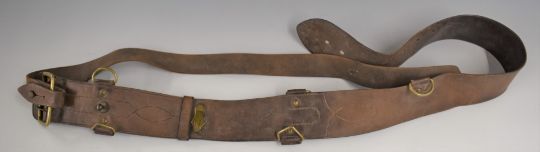 Three British Army Royal Gloucestershire Hussars 'Sam Brown' belts / shoulder belts. Consigned for sale by the Trustees of the Royal Gloucestershire Hussars Trust.