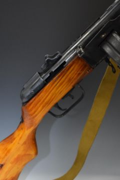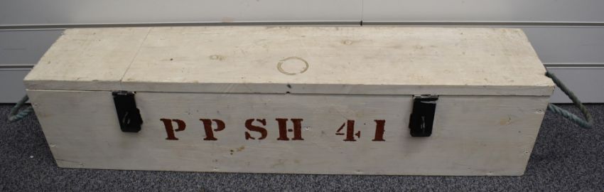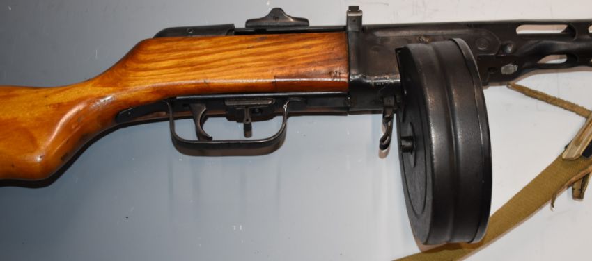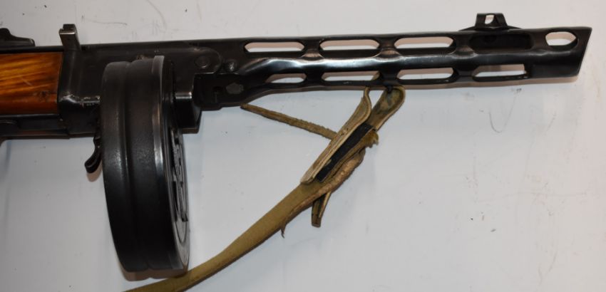 Deactivated Russian PPsh41 7.63mm sub machine gun with rotary magazine, canvas sling, adjustable sights and semi-pistol grip, serial number BY4933, with deactivation certificate dated 27/09/2021, in fitted wooden box marked PPSH 41.
